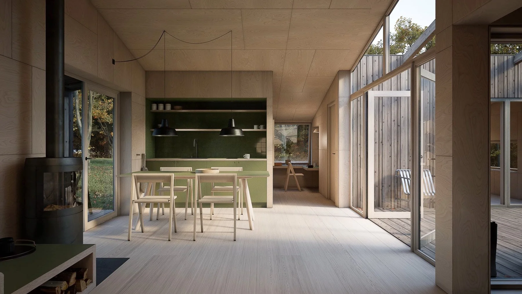 An architecture and design studio developing furniture products alongside their modular housing systems. The challenge: test product designs like an A-shaped foldable chair in realistic settings before manufacturing, and create marketing materials from the same digital environment.